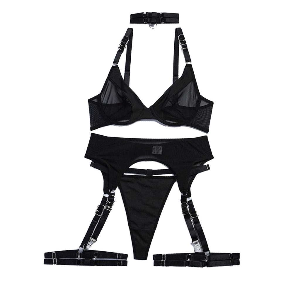 Experience style and comfort with our 5-piece patchwork playsuit. Made from high-quality polyester and spandex, this ensemble offers optimal flexibility and comfort. The adjustable straps and elegant back closure ensure a perfect fit, while the solid color pattern and half cups (1/2 cup) guarantee a subtle, seductive look. Perfect for exciting nights and special occasions, this versatile piece expresses the essence of Berlin kinky chic.