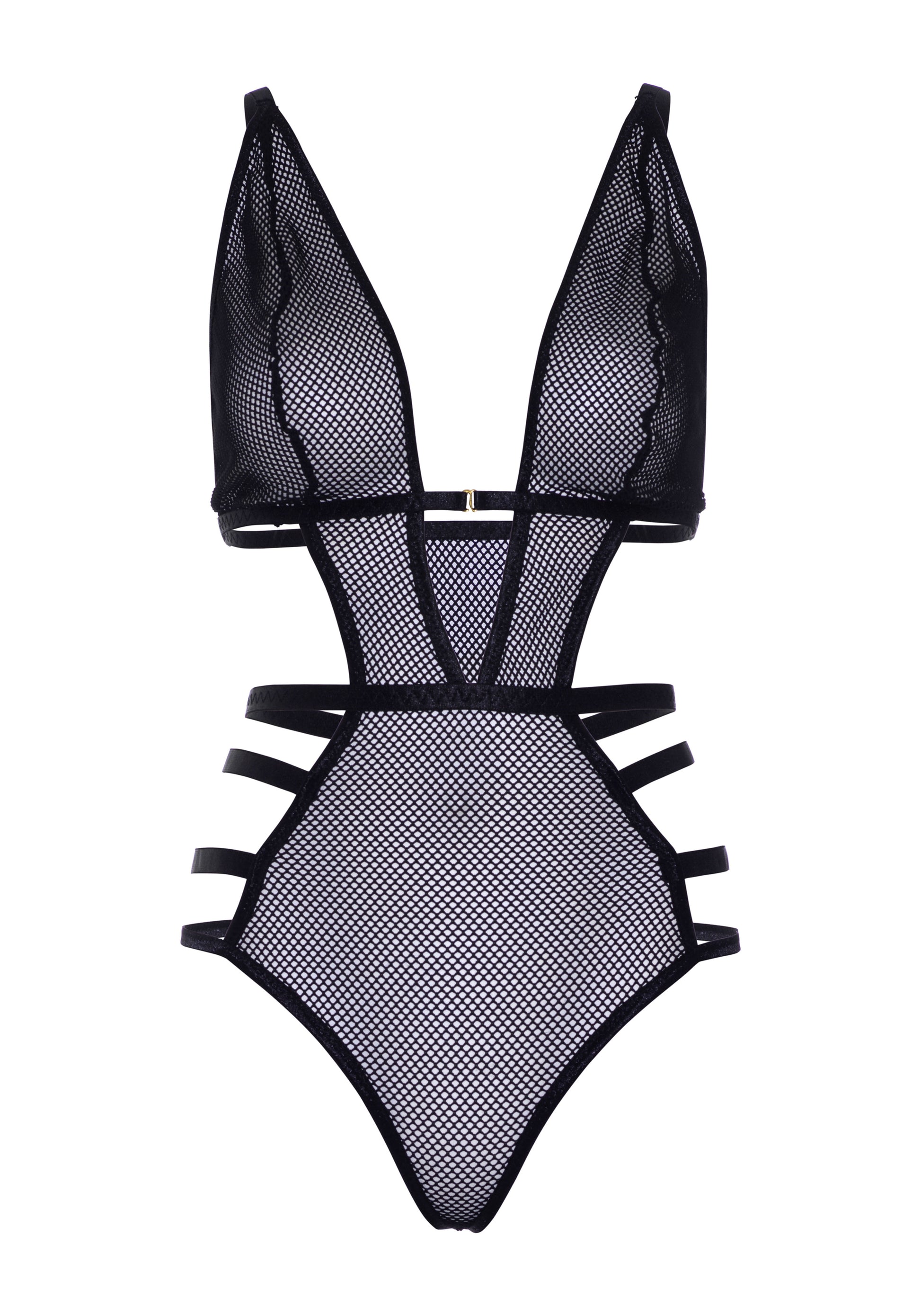 Seduce your sweetie in this fishnet cut-out strappy g-string teddy with adjustable straps. The bodysuit features a strappy bodice with a cut-out design, a plunging deep-v front and a thong panty.