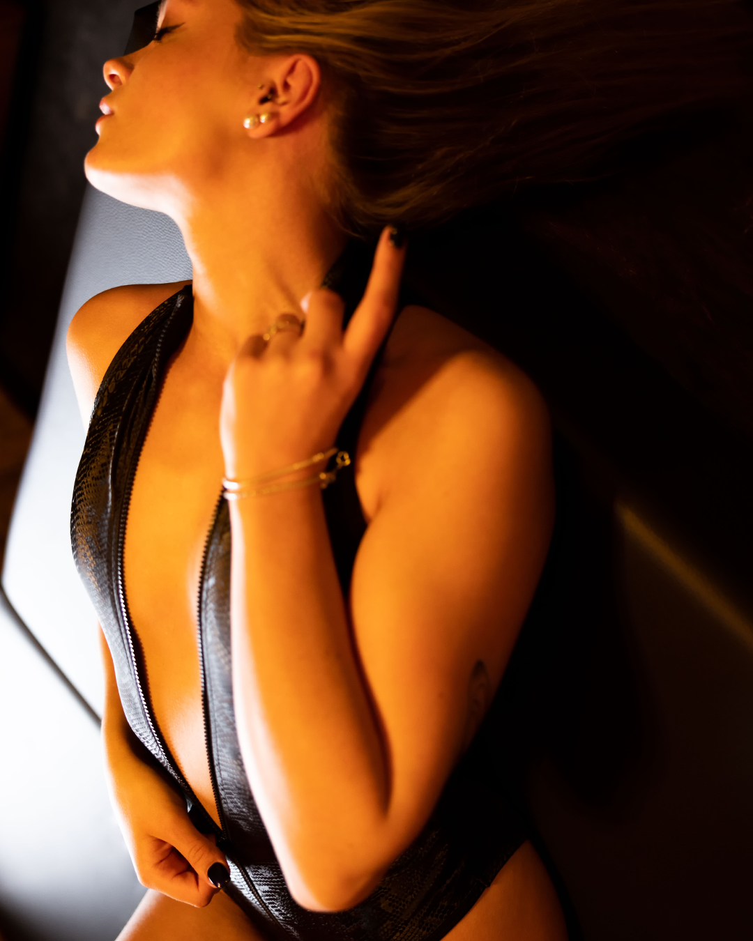 The "Haut Body-950" in snakeskin look creates an exciting yet elegant look. The shiny, shimmering material offers a skin-tight fit while providing maximum comfort. With a practical (and erotic) 2-way zipper that runs from the collar over the crotch to the buttocks, this body can be adjusted in a way that is both practical and seductive.