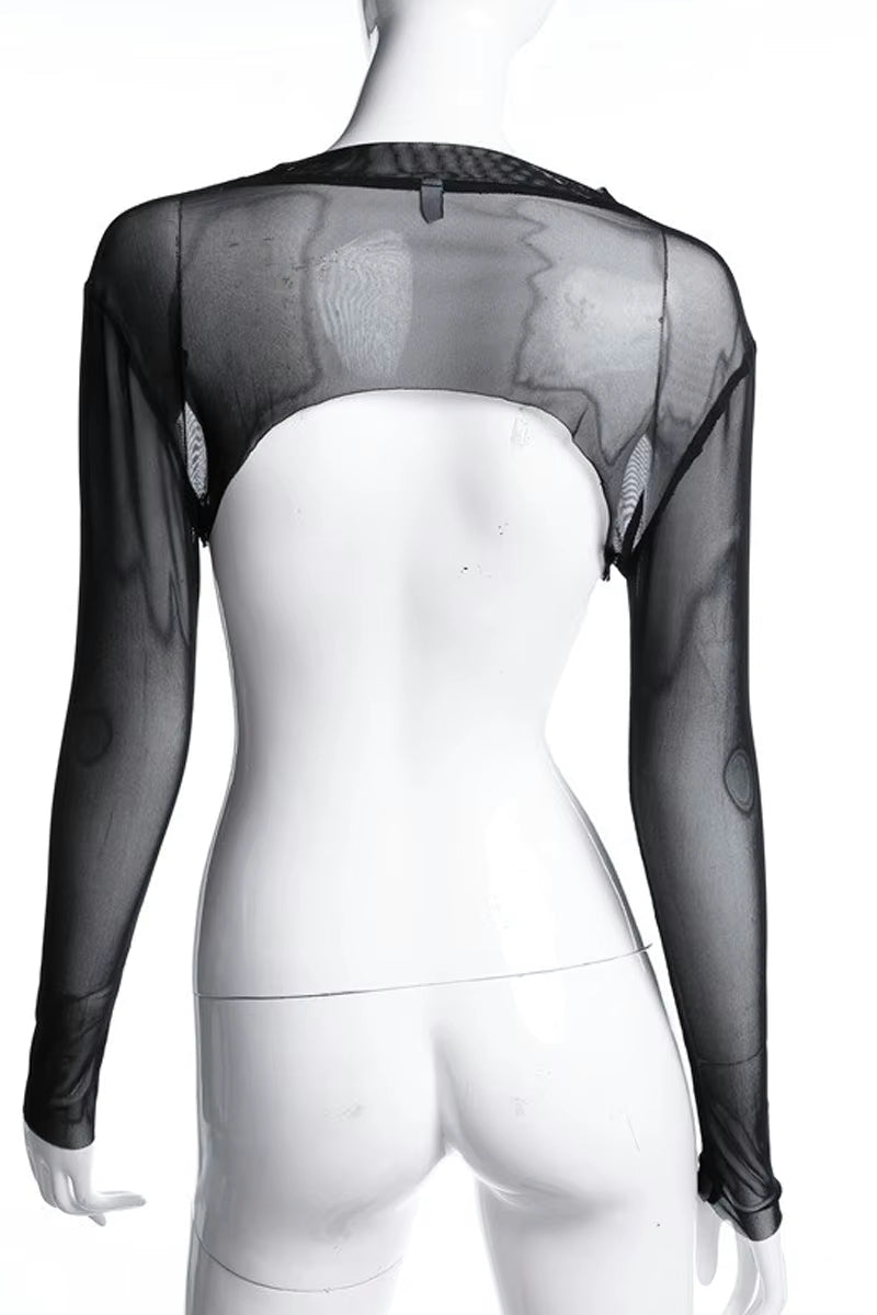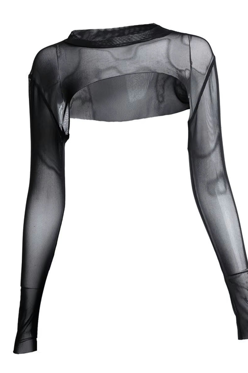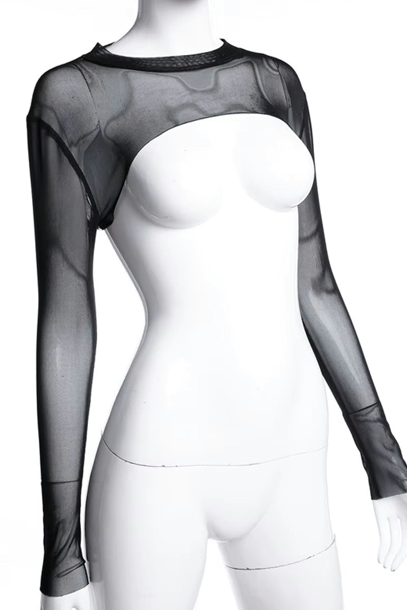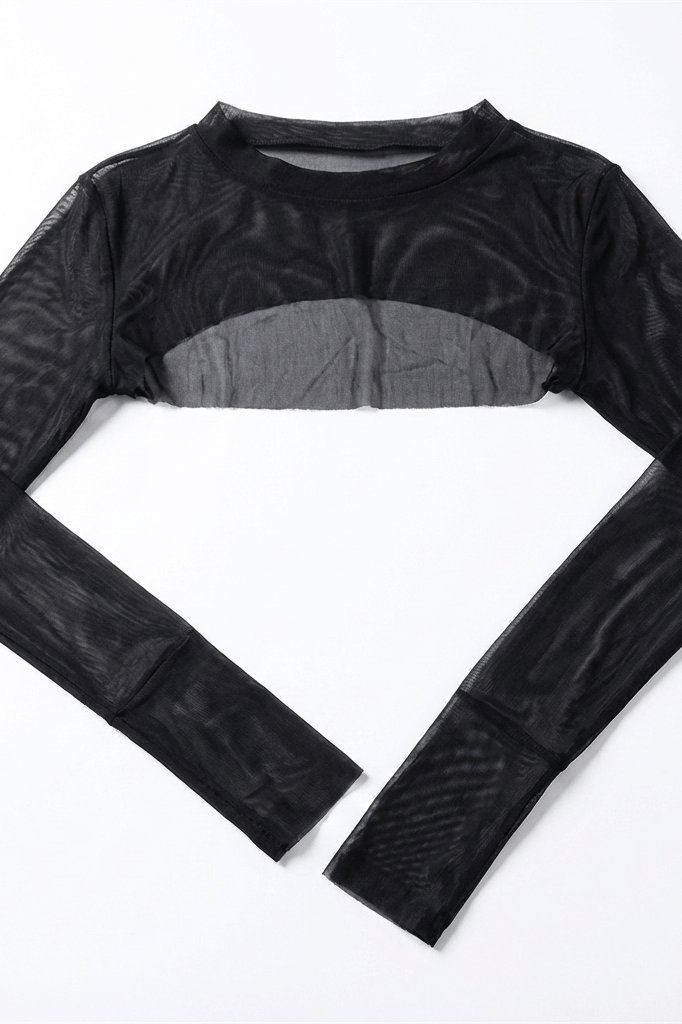 Haut court en résille à manches longues Gardez une longueur d'avance sur la courbe de la mode avec cette combinaison audacieuse de style et de confort - un ajout brûlant à votre garde-robe qui ne vous laissera pas passer inaperçu.