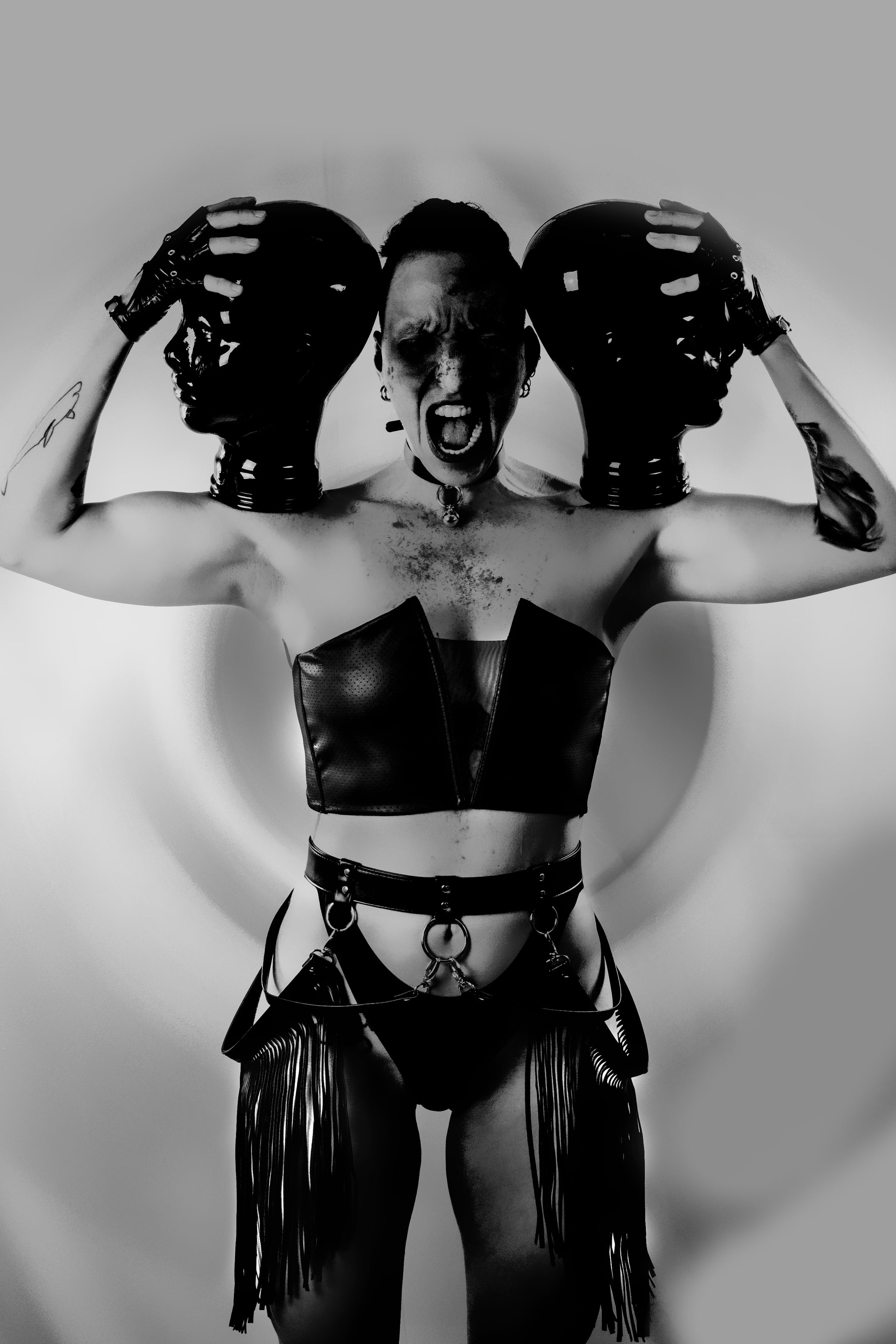 Ce haut audacieux présente un empiècement triangulaire en résille noire sur le devant, dévoilant le décolleté avec une élégance affirmée. Entièrement confectionné en tissu effet mouillé perforé, il épouse les formes pour une silhouette impeccable. Des armatures invisibles et une construction unique garantissent un maintien parfait, tandis qu'une fermeture à double agrafe métallique au dos offre un confort ajustable. L'intérieur est doublé d'un tissu noir doux, pour un confort optimal et un effet visuel captivant.