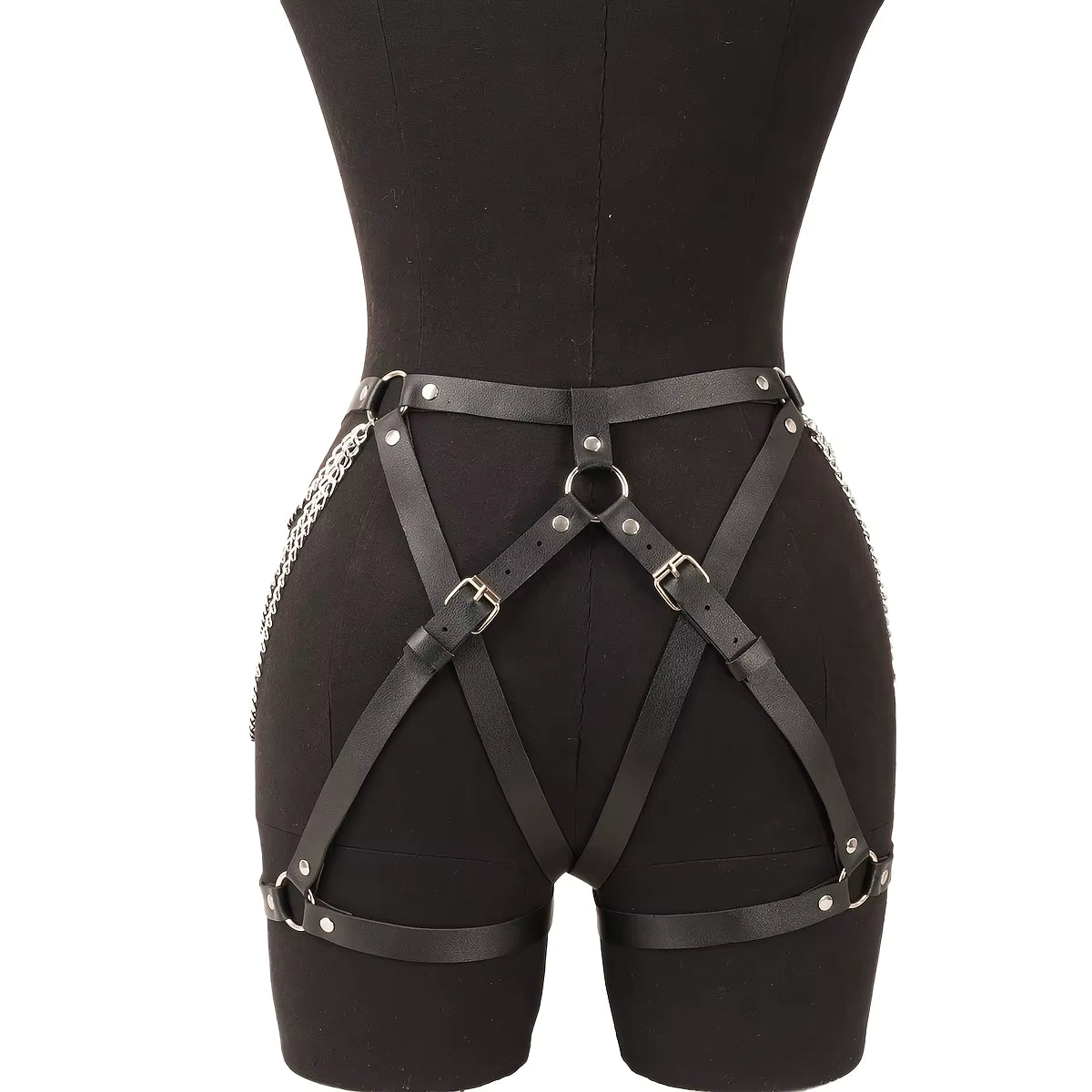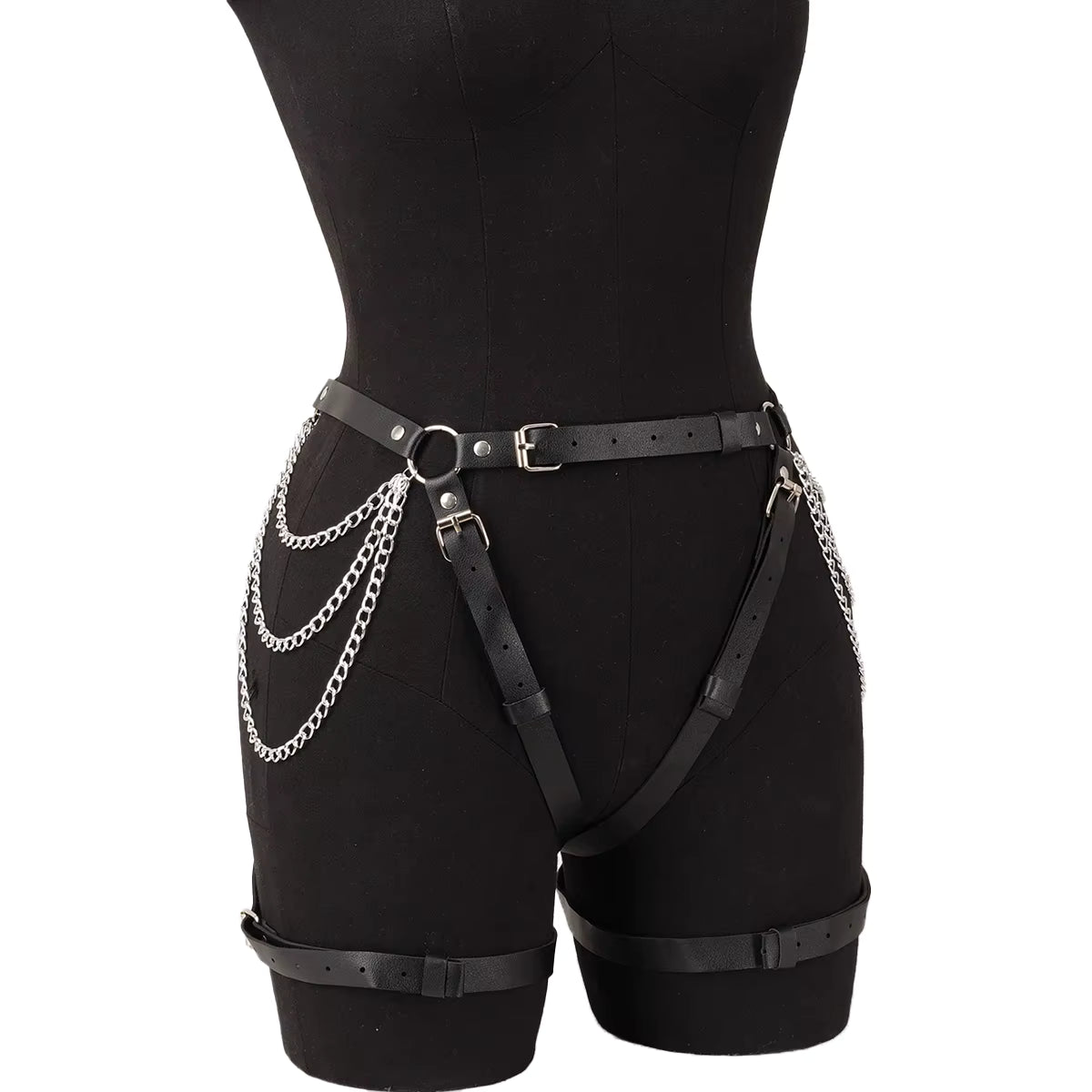 Belt Chain Garter Elevate your intimate style with this audacious chain garter—a statement piece that blends edge with elegance. Crafted with detailed chain links and a secure belt design, it drapes across the leg with confident allure. Perfect for those who dare to layer luxury with attitude, this harness transforms any look into something unforgettable. Wear it solo for maximum impact or layer beneath sheer fabrics for a tantalizing peek.