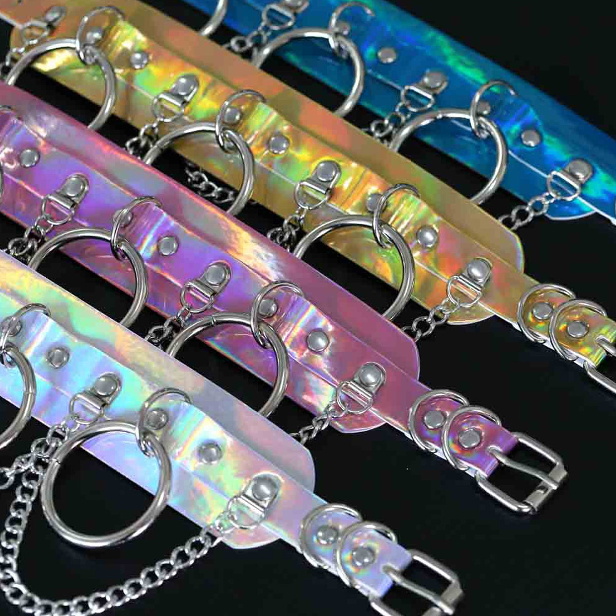 Make a bold statement with the Holographic Chain Necklace. Its shimmering, reflective surface catches the light from every angle, adding an edgy, futuristic vibe to any outfit. Perfect for those who dare to stand out, this choker combines modern style with a striking holographic finish that demands attention. Elevate your look with this fearless accessory.