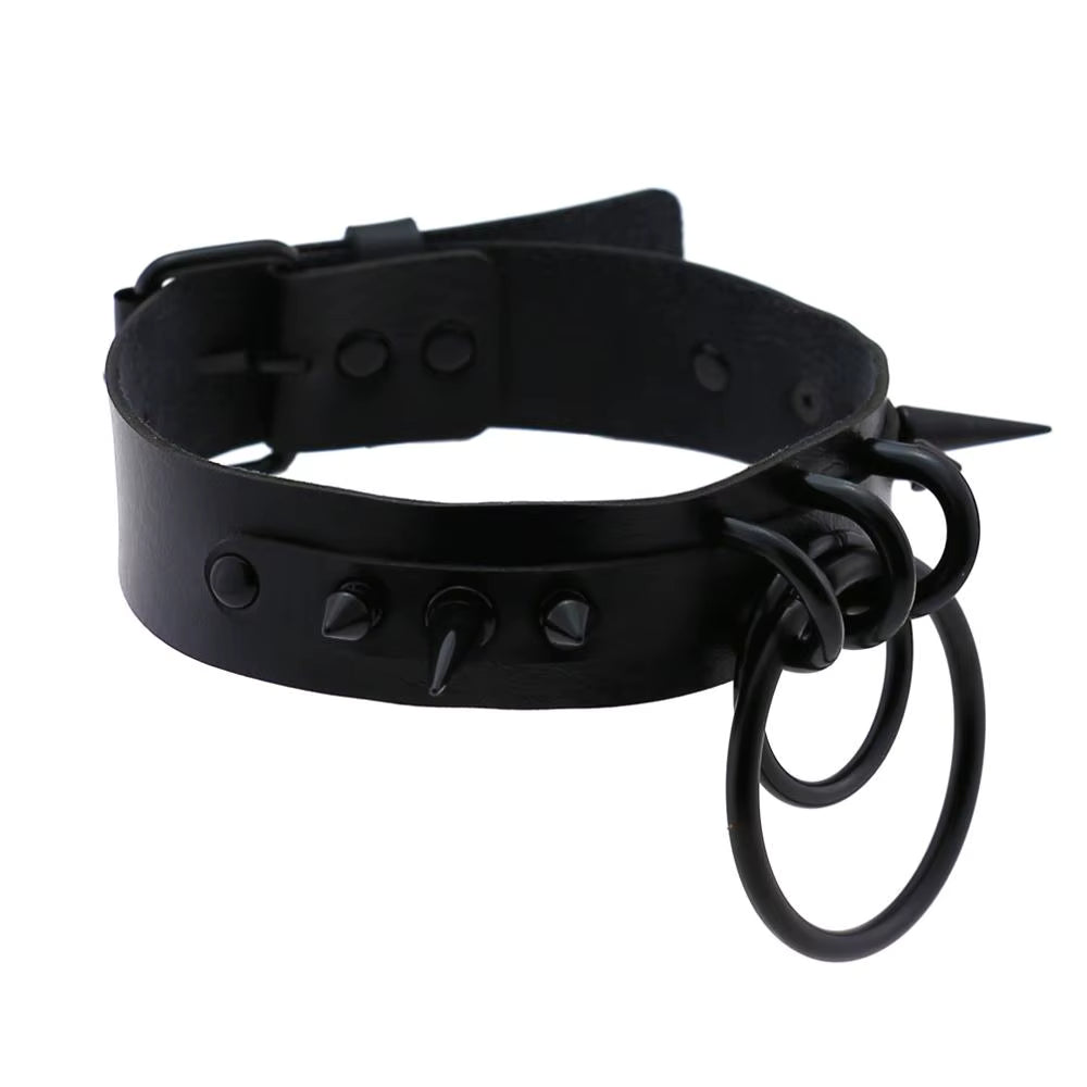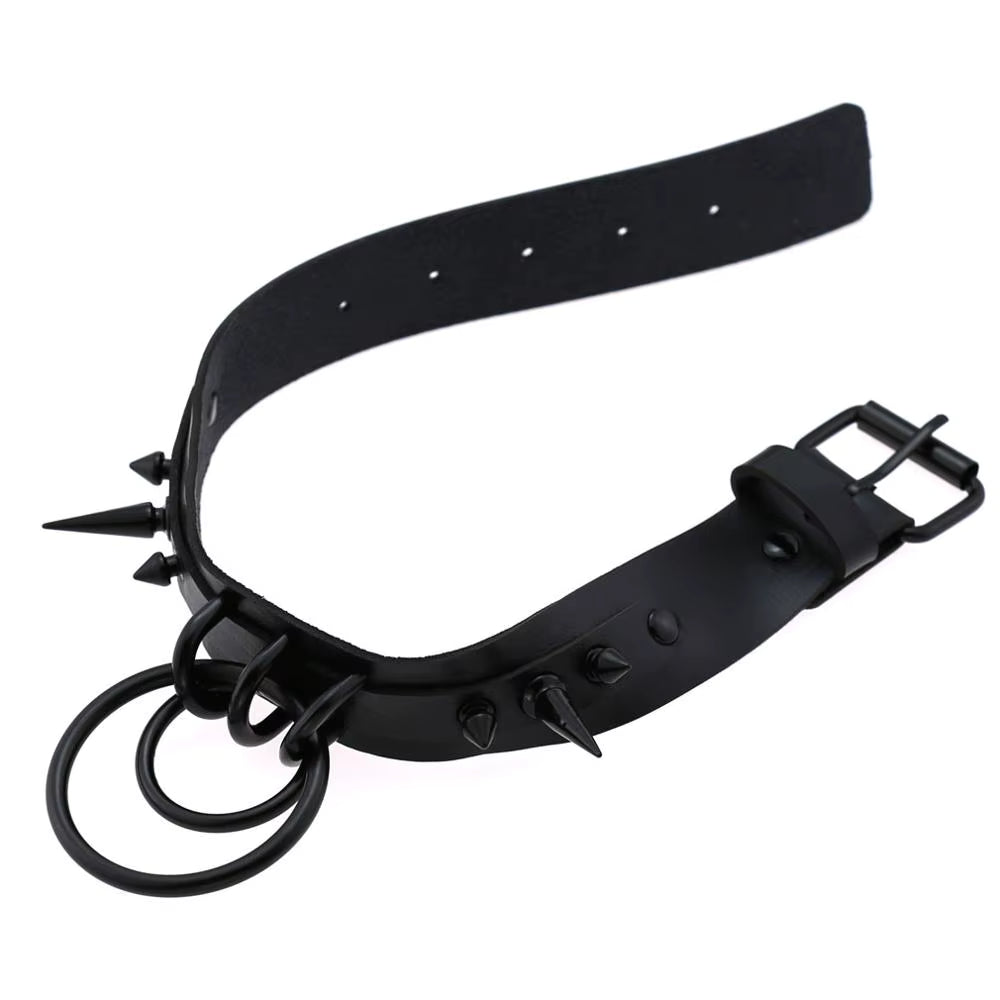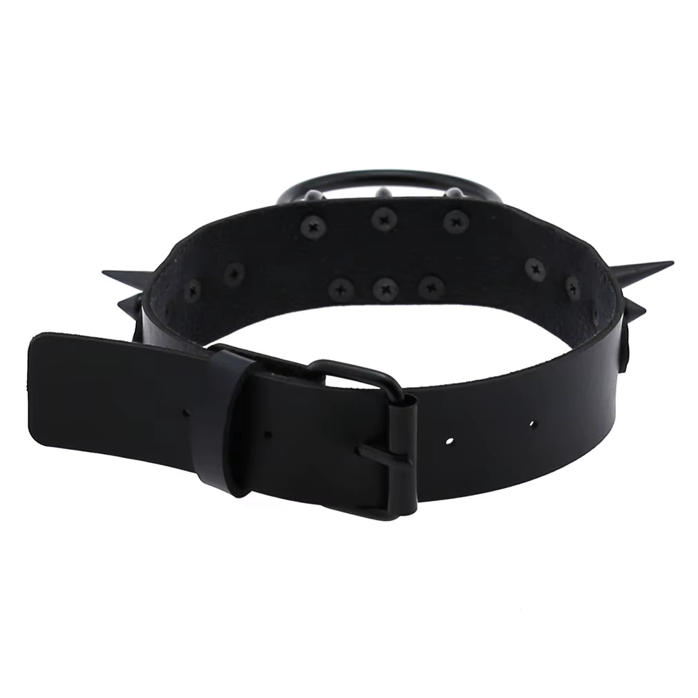 Command attention with the O Ring Spiked Choker in full black. This bold accessory features sharp spikes and a prominent O-ring, adding an edgy statement to your look. Perfect for standing out and expressing fearless style.