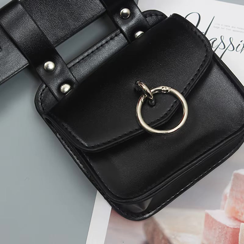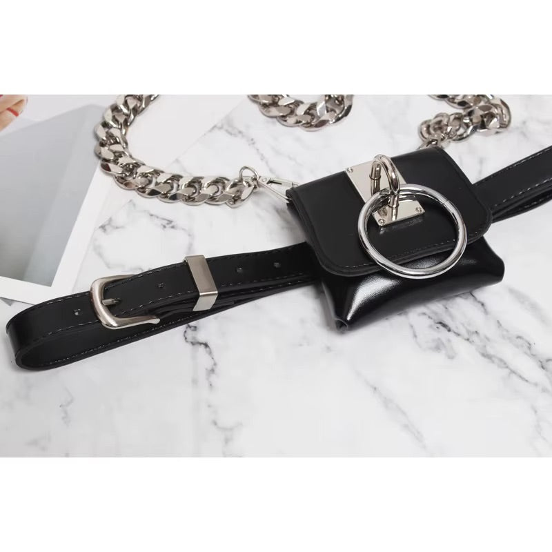 These sleek black faux leather mini party bags are designed for those who want to keep it minimal yet bold. Featuring chain details that exude edgy sophistication, this bag is your perfect companion for techno nights, underground events, or any occasion where style meets functionality.