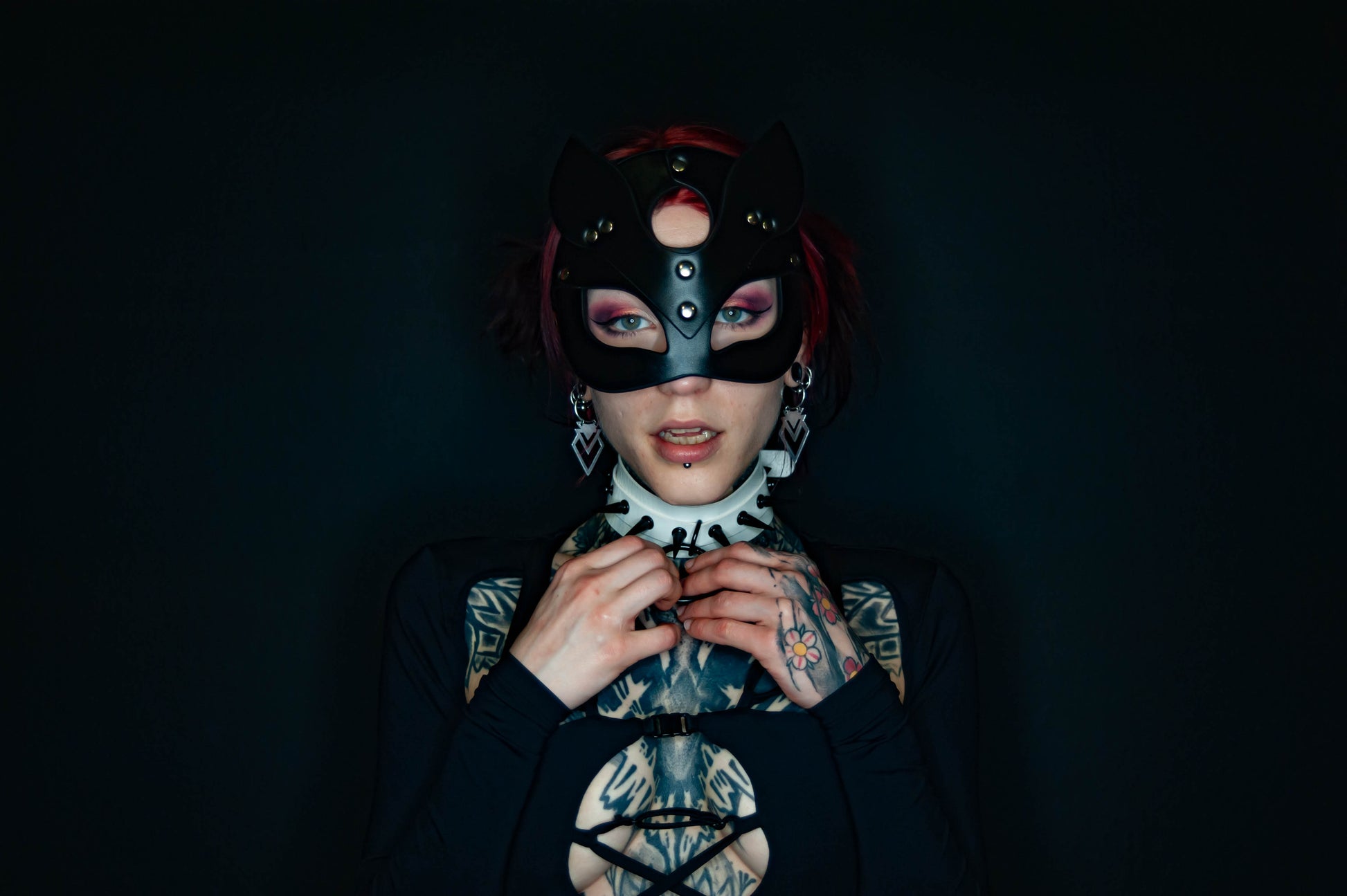 3. Half-face cat with ears, and small rhinestones inlaid around the eyes, giving you a sexy mysterious look.