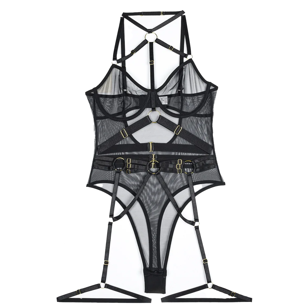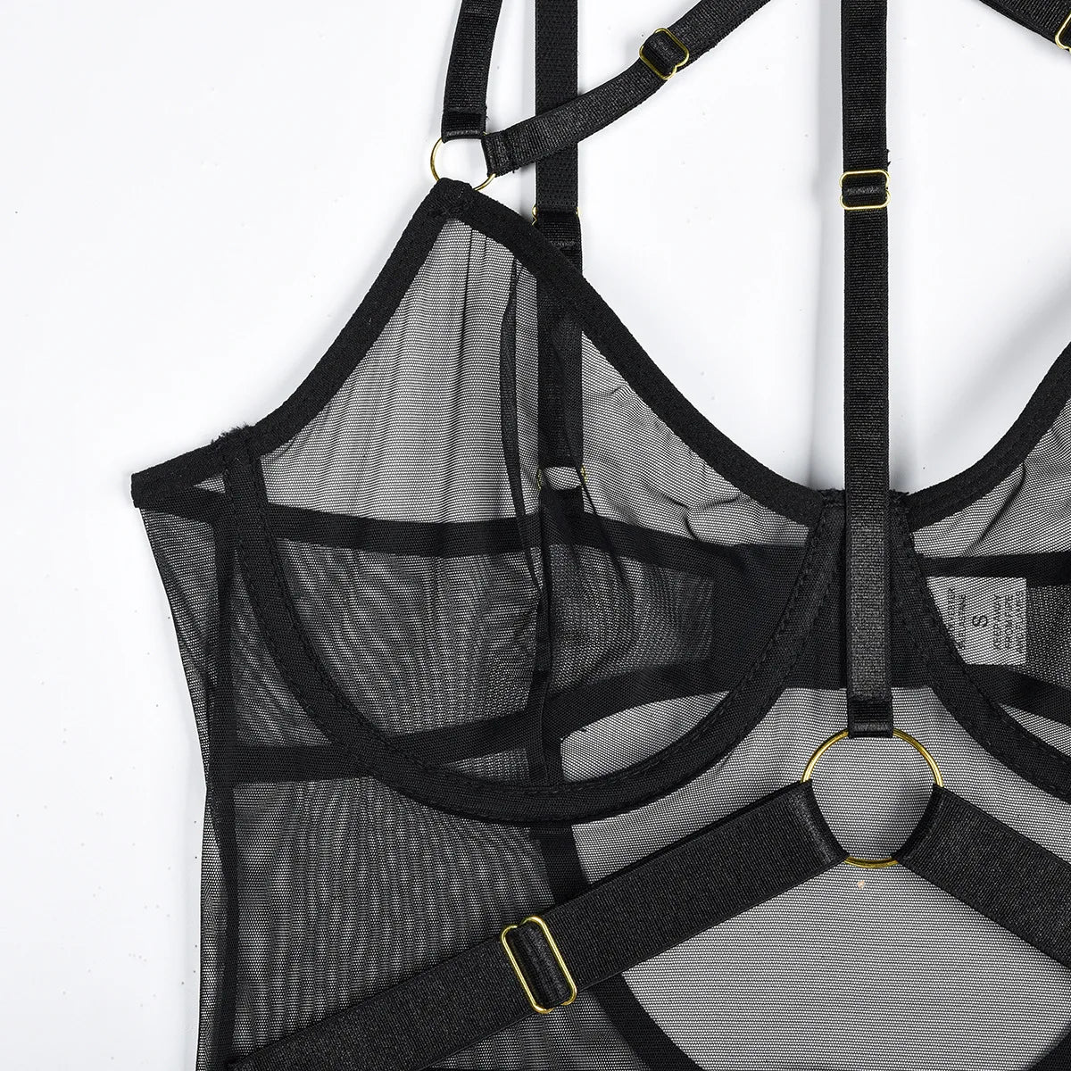 Das Bandagen-Design dieses Bodys umspielt Ihre Taille auf mutige Weise und unterstreicht Ihre natürlichen Kurven in einem modernen, gewagten Stil. Hergestellt aus durchscheinender Spitze, bietet der Body eine anziehende, doch geschmackvolle Optik, kombiniert mit Atmungsaktivität und Tragekomfort.