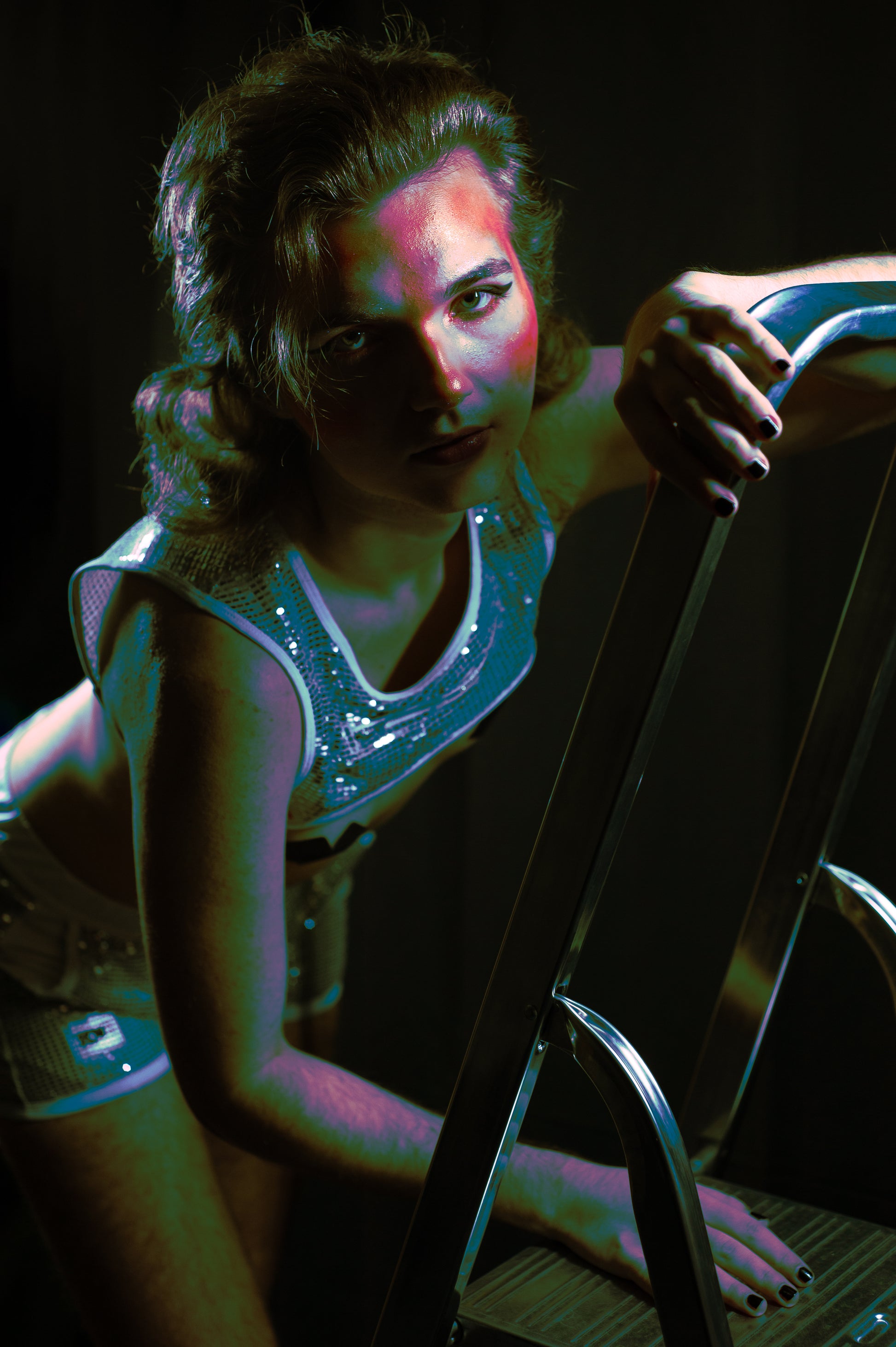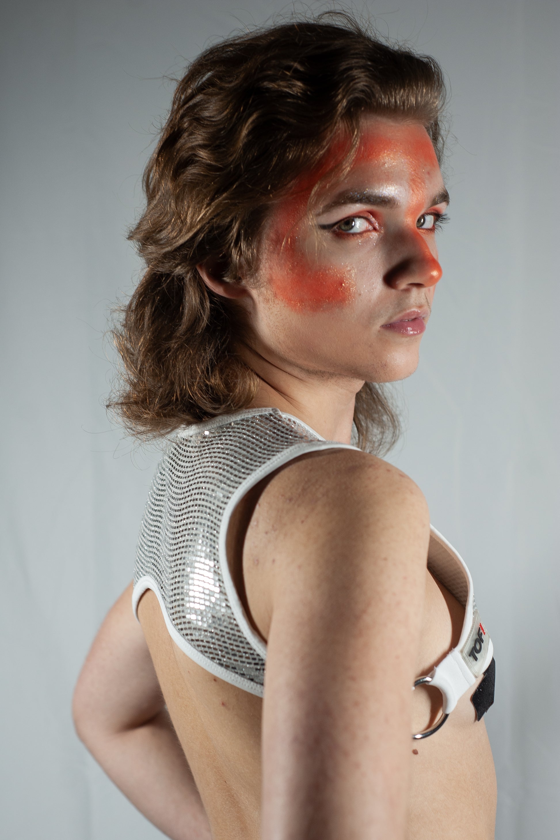 Featuring a glittering sequined fabric, a handy zippered pocket, adjustable straps with rings, available in silver or gold, and exclusively crafted in Paris.